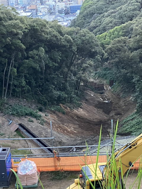 中腹部の待ち受け工盛土も確認できますが、段切りしているのでしょうか?