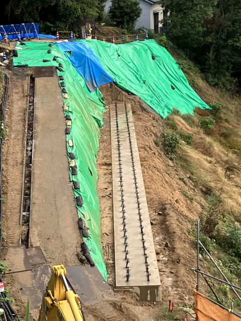 作業工台撤去完了、小規模崩落土砂撤去、施工状況全景