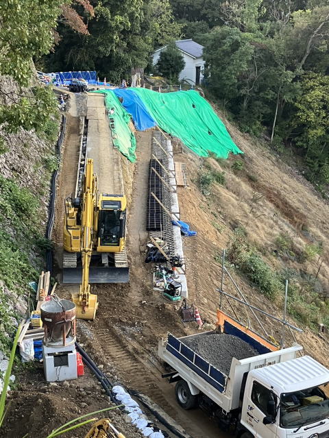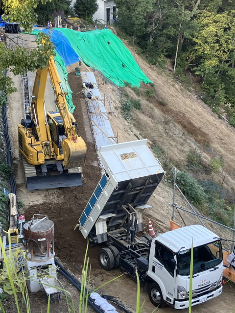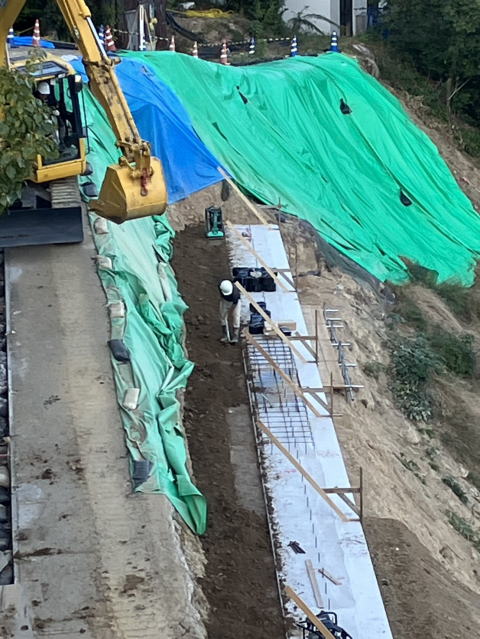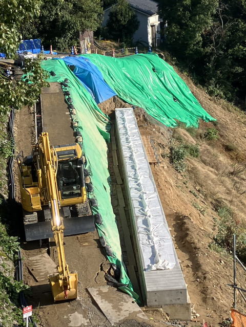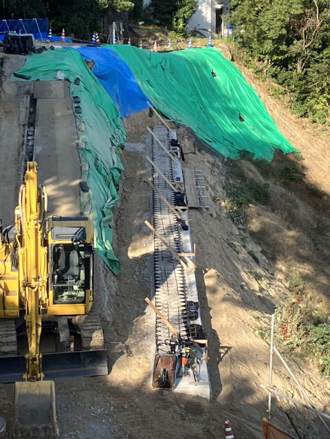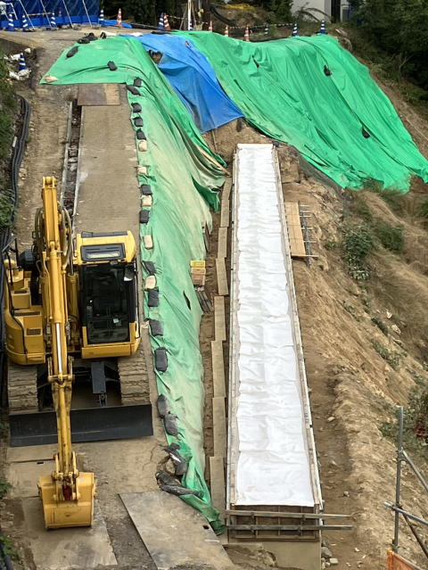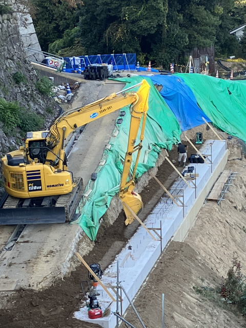 ![]() 写真① 11月4日16:15 コンクリート打設養生 写真提供者:片山さん ![]() 写真② 11月6日08:41 型枠脱型 写真提供者:片山さん 1日で脱型しているので早強セメント。 ![]() 写真③ 11月7日 背面埋戻し状況 写真提供者:片山さん ![]() 写真④ 11月7日 背面埋戻し状況 写真提供者:片山さん ![]() 写真⑤ 11月7日 水路設置状況 写真提供者:片山さん ![]() 写真⑥ 11月8日 テラセル設置状況 写真提供者:片山さん ![]() 写真⑦ 11月8日 テラセル設置状況 写真提供者:片山さん ![]() 写真⑧ 11月9日 テラセル設置状況 写真提供者:片山さん ![]() 写真⑨ 11月10日 土砂運搬状況 写真提供者:片山さん 過積載大丈夫? ![]() 写真⑩ 11月10日 テラセル設置状況 写真提供者:片山さん ![]() 写真⑪ 11月10日 テラセル設置状況 写真提供者:片山さん ![]() 写真⑫ 11月11日 砕石搬入状況 写真提供者:片山さん |