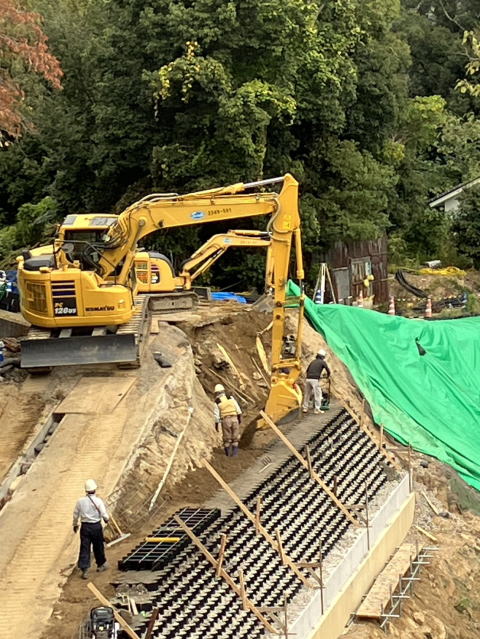 | 工事施工状況 | テラセル(重力式擁壁)設置状況 | |