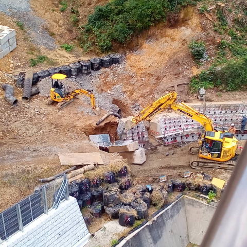 | 工事施工状況 | テラセル(重力式擁壁)設置状況 | |