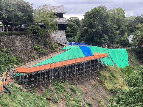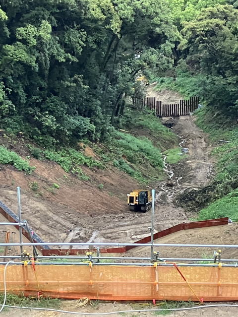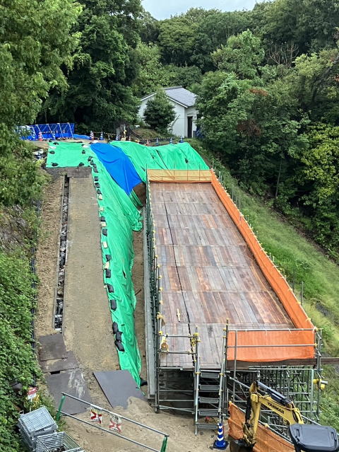 格子状に組み上げた単管の上に足場板を設置しステージにします。