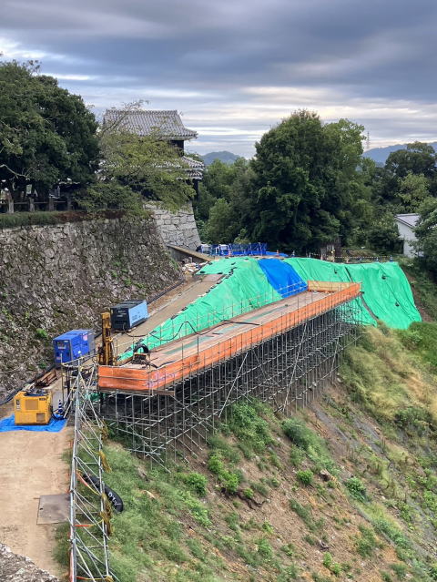 少し判り難いのですが、基礎に空けていた孔をから、地中に特殊杭を打ち込んでいます。