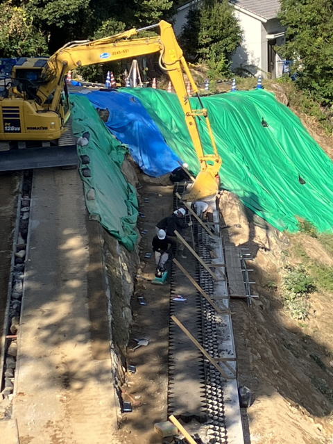 ![]() 写真① 11月4日16:15 コンクリート打設養生 写真提供者:片山さん ![]() 写真② 11月6日08:41 型枠脱型 写真提供者:片山さん 1日で脱型しているので早強セメント。 ![]() 写真③ 11月7日 背面埋戻し状況 写真提供者:片山さん ![]() 写真④ 11月7日 背面埋戻し状況 写真提供者:片山さん ![]() 写真⑤ 11月7日 水路設置状況 写真提供者:片山さん ![]() 写真⑥ 11月8日 テラセル設置状況 写真提供者:片山さん ![]() 写真⑦ 11月8日 テラセル設置状況 写真提供者:片山さん ![]() 写真⑧ 11月9日 テラセル設置状況 写真提供者:片山さん ![]() 写真⑨ 11月10日 土砂運搬状況 写真提供者:片山さん 過積載大丈夫? ![]() 写真⑩ 11月10日 テラセル設置状況 写真提供者:片山さん ![]() 写真⑪ 11月10日 テラセル設置状況 写真提供者:片山さん ![]() 写真⑫ 11月11日 砕石搬入状況 写真提供者:片山さん |