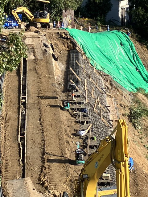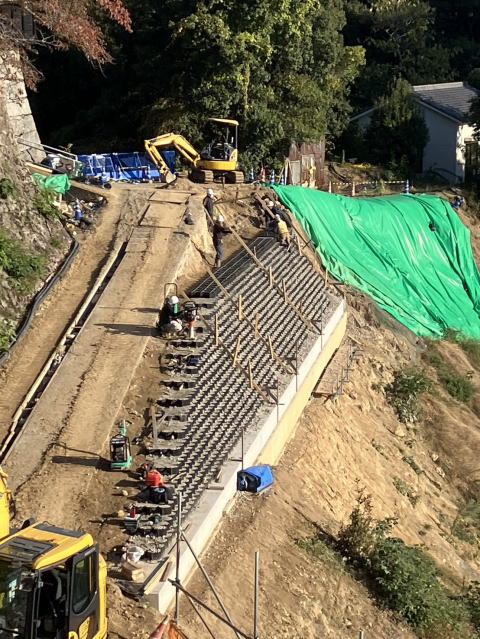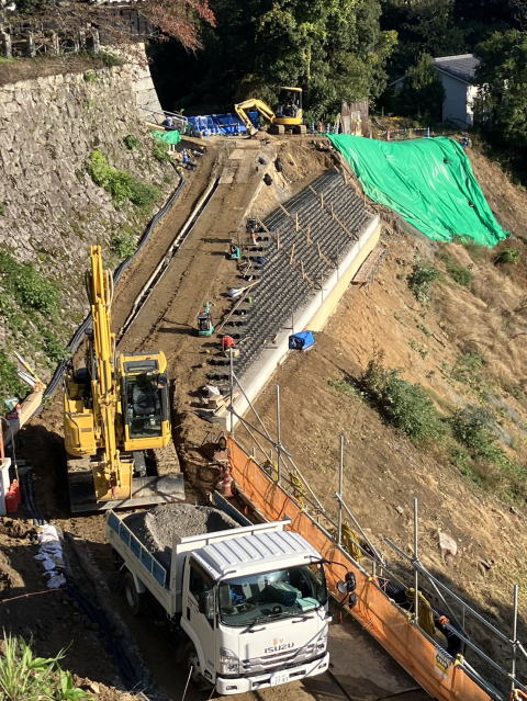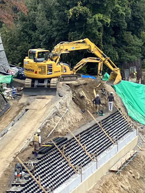 | 工事施工状況 | テラセル(重力式擁壁)設置状況 | |