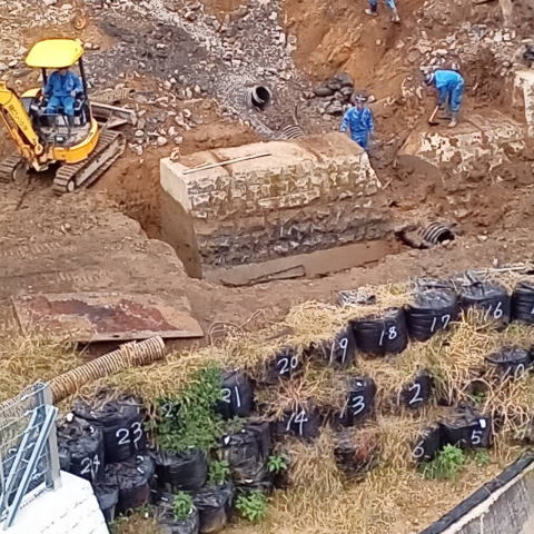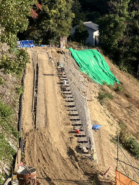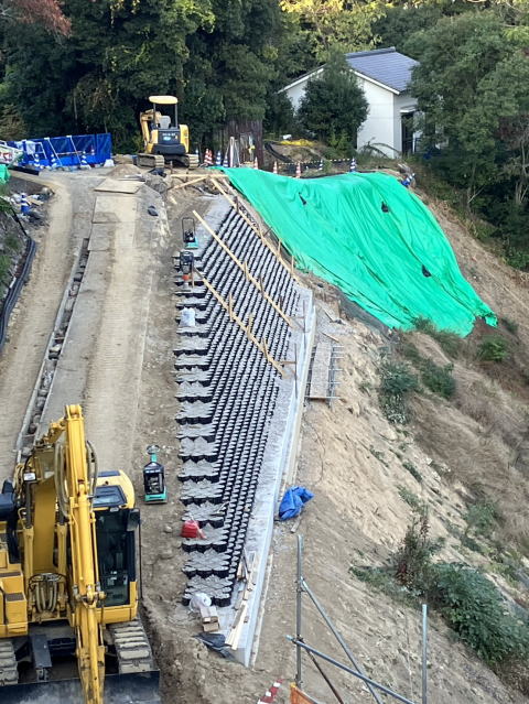 | 工事施工状況 | テラセル(重力式擁壁)設置状況 | |