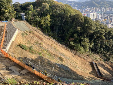 | 工事施工状況 | 高強度ネット工B+地山補強土工 設置状況 | |