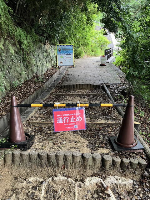 日時・場所 令和7年9月5日・古町口登城道 状況と対応 台風一過・通行止めになっていました。 行政側からの回答及び対応 ー 通行止め シートはそのまま ちょっと大きめの小枝 令和7年8月20日 工事の準備? 日時・場所 令和7年8月20日・古町口登城道 状況と対応 擁壁上部のクリープの発生していると思われる個所。 シートがかけられていました。 行政側からの回答及び対応 ー このページの先頭へ