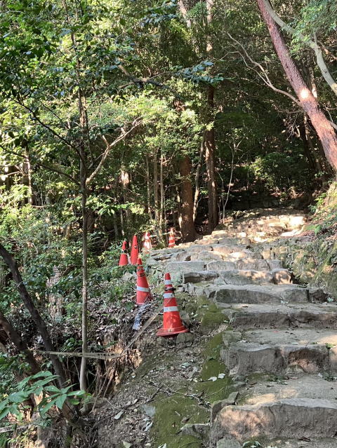 令和7年8月30日:黒門口登城道案内看板 令和7年8月30日:黒門口登城道パイロン設置 令和7年8月30日:黒門口登城道 令和7年8月30日:黒門口登城道 令和7年8月30日:黒門口登城道