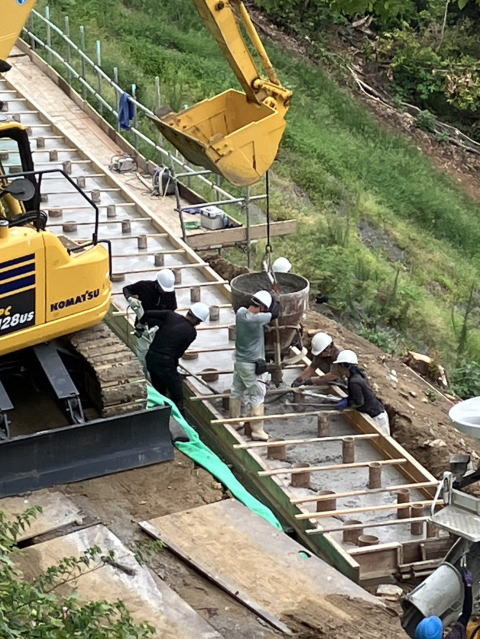 | 工事施工状況 | 擁壁基礎コンクリート打設完了 | |