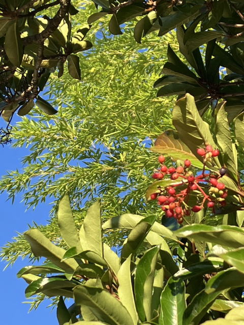 サンゴジュの赤い実が青空に映えます!