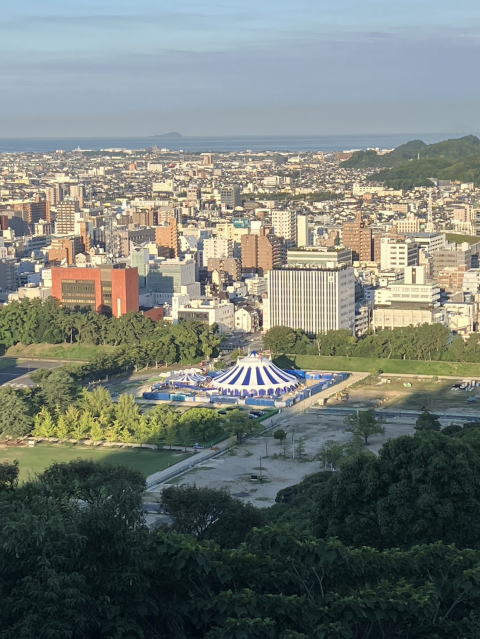 眼下の城山公園にはワールド・ドリームサーカスのテント、8月18日までの入場者数2万人超え!