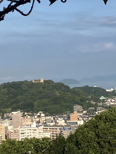 西には松山総合公園展望台、その右手に『ダッシュ島』を眺望する事ができます